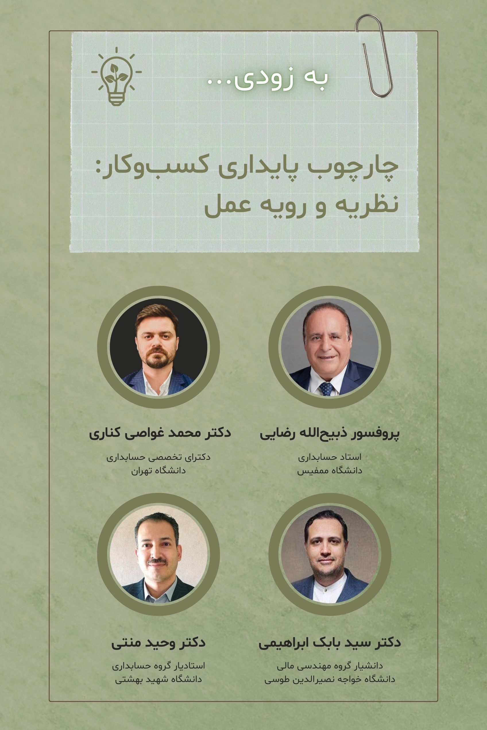 کتاب «چارچوب پایداری کسبوکار: نظریه و رویه عمل» به قلم پروفسور ذبیحالله رضایی، دکتر محمد غواصی کناری، دکتر سید بابک ابراهیمی و دکتر وحید منتی به زودی منتشر خواهد شد.